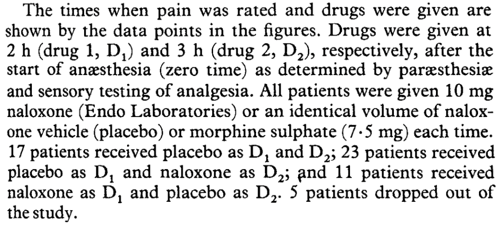 Although pain increases in all naloxone groups, the authors don’t expect that this is a result of naloxone increasing pain, but of natural history taking its course.